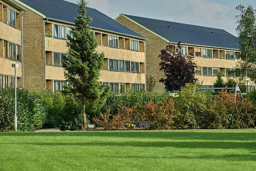 Boligerne ligger ud til skønne grønne områder med buske, træer, blomster og gangstier, hvor man også kan blive fristet til at tage sig en lille løbetur.